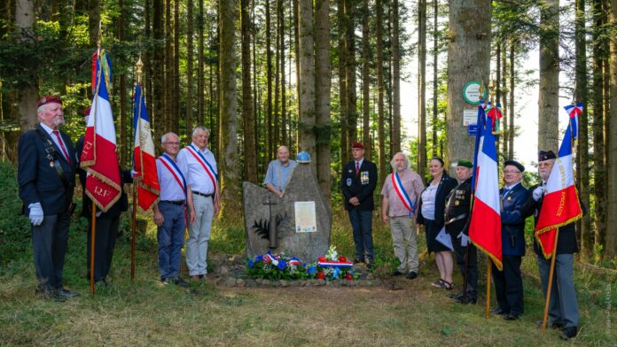 Une cérémonie s’est tenue au col de Schlingoutte en l’honneur des 19 soldats français tombés en ce lieu le 15 août 1914. L’événement, organisé par le comité Souvenir Français de la vallée de Sainte-Marie-aux-Mines et de la montagne, a réuni une vingtaine de porte-drapeaux et des présidents d’associations patriotiques, dont le Souvenir Français, l’UNC, d’anciens parachutistes, et des membres du Service spécial.