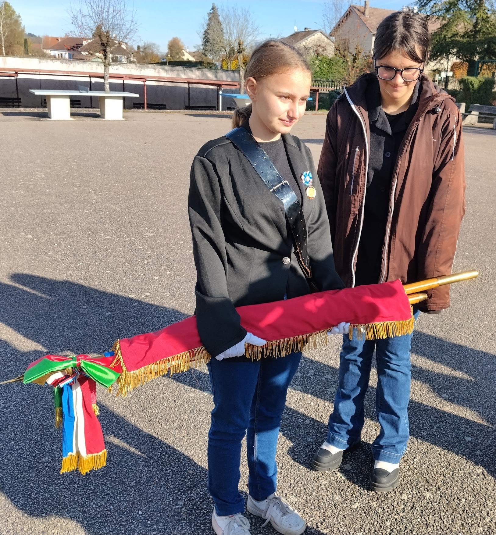 Le point d’orgue fut la remise d’un drapeau de l’association de la « Légion Vosgienne » au collège. Le Souvenir Français a confié ce drapeau pour une durée de trois ans. Ainsi, cette action entre dans le cadre des dépôts de drapeaux dans les établissements scolaires.