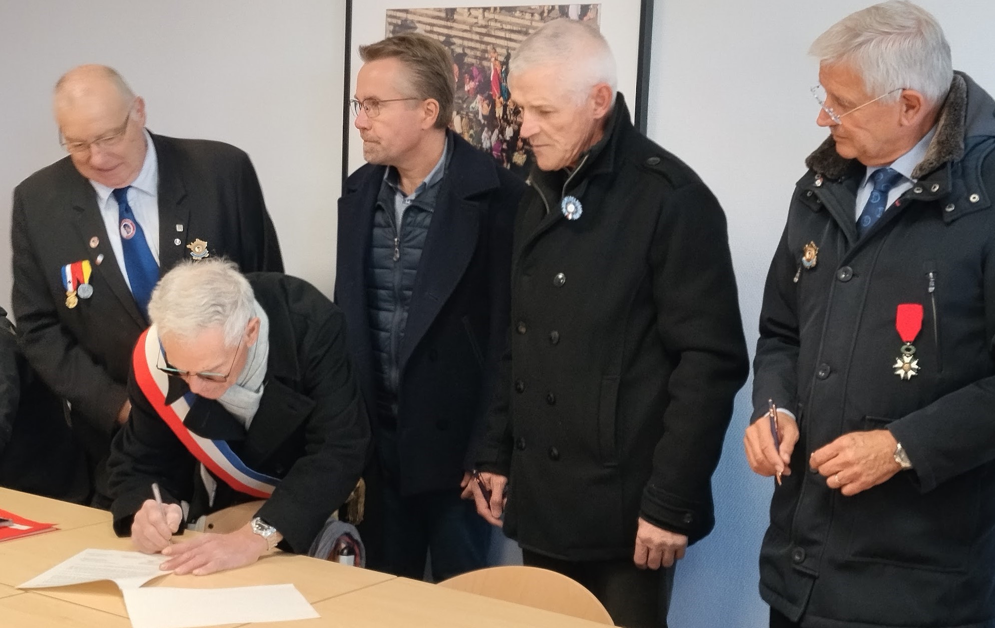 Par conséquent, la convention a été signée au sein même du collège le 10 novembre. Les signataires incluaient C. Grégoire, D. Ruffy (Principal), D. Toffin (SF Lamarche), D. Vagné (Maire de Lamarche) et C. Fageot (Présidente Légion Vosgienne 88).