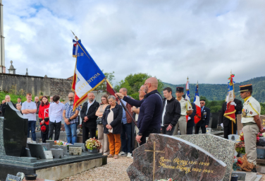 Sa famille a organisé cette commémoration en partenariat avec le 35e Régiment d’Infanterie de Belfort, où il était affecté et la commune de Taintrux, d’où il était originaire. La cérémonie militaire, présidée par le Colonel Duchemin, actuel Chef de corps du régiment, s’est déroulée au Monument aux Morts 39-45, Place Philippe Pierrat, en présence des autorités civiles et militaires locales et du Général de division Martin, également ancien Chef de corps du 35.
